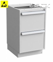 Zásuvková skříňka určená jako volně stojící. Skříňka obsahuje zásuvky 1 x 100 mm, 1 x 150 mm, 1 x 300 mm. Uzamykatelná, ESD provedení, rozměry 450 x 520 x 760 mm.