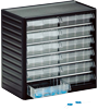 Nabídka skříní na malé součástky, skříní na zásobníky a široká škála zásobníků poskytují bohaté možnosti pro ukládání různých druhů předmětů. Zásobníky jsou vylisovány z odolného polypropylenu, který je za všech normálních podmínek silný a stabilní. Velká oblast pro etiketu nabízí snadnou identifikaci obsahu a barevné varianty zásobníků umožňují vytvoření barevně kódovaných systémů. Mezi další možnosti patří otočné skříňky a vozíky, jež jsou flexibilnější.