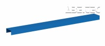 Horní lišta tvoří vrchní okraj dělicích stěn s perforovanými panely. Rozměry 718 x 65 mm, barva modrá.