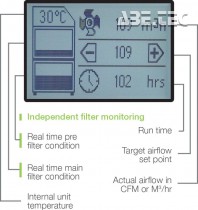- Nezávislé sledování, zobrazování a varování stavu filtru.