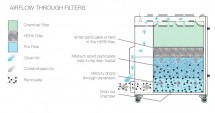 | Účinnost filtrů | předfiltr 95% u částic 0,9 mikrony, kombinovaný filtr 99,997% u částic 0,3 mikrony |