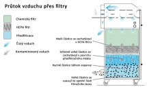 | Účinnost filtrů | předfiltr 95% u částic 0,9 mikrony, kombinovaný filtr 99,997% u částic 0,3 mikrony |