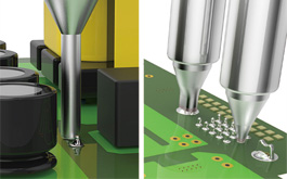 Vysoký výkon 140 W umožňuje perfektní odpájení komponent z vícevrstvých DPS. Pro různé odpájecí práce je k dispozici široký výběr trysek. |