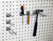 Pořádek a úhlednost nelze zajistit a udržovat, pokud nemá každý nástroj svoje místo. Perforované panely a háčky nabízejí praktické a univerzální řešení pro ukládání nástrojů a zařízení. Perforované panely se dodávají pro přímé upevnění na stěnu nebo na svislé profily. Rozměry perforace jsou 9 x 9 mm, vzdálenost mezi středy je 38 mm.