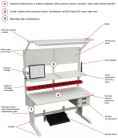 Koncepce všech pracovních stolů Sovella je plně modulární. Sami si zvolíte přesný typ rámu, pracovní desky a doplňků. Všechny části pracovní sestavy lze později libovolně upravovat či rozšiřovat o další příslušenství. Nosnost stolů se pohybuje mezi 200 - 500 kg, výšku pracovní desky lze upravovat pomocí imbusového klíče, kliky či elektromotoru. K dispozici jsou laminátové pracovní desky ve světle šedé barvě nebo ESD / antistatické pracovní desky určené pro práci s elektrostaticky citlivými součástkami.