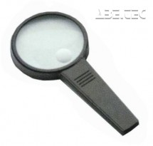 Ruční lupa s plastovou bikonvexní čočkou.