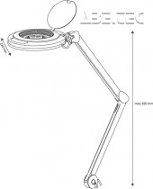 Výkonná a energeticky úsporná lupa s osvětlením v elegantním kovovém provedení osazená 60 diodami SMD LED. Velmi kvalitní skleněná čočka s 3násobným zvětšením (8 dioptrií) se skvěle hodí pro detailní práce. Nastavitelné rameno lupy umožňuje pracovat v mimořádně velkém prostoru. Odolná kovová konstrukce s rukojetí umožňuje snadné nastavení lampy.