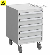 Centrálně uzamykatelké zásuvkové jednotky z vysoce kvalitní oceli nabízí prostor pro skladování nástrojů a malých součástek. Montují se pomocí držáků pod desku stolu. K dispozici jsou také verze s kolečky či soklem. Zásuvkové skříňky jsou pokryty epoxidovou ochrannou vrstvou (šedá, RAL 7035), centrálním zamykáním a úchytkou z anodizovaného hliníků po celé šířce zásuvky.
