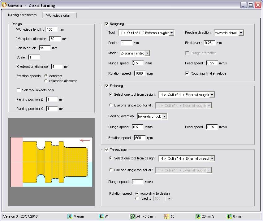 Gawain je modul pro neindexované soustružení, funguje na principu jednoduchého dvou osového soustružení. Parametry soustružení jsou nezávislé a mohou koexistovat s frézovacími parametrů. Tento modul se otočil ještě často používají modelářů na pasivní soustruhu se připojit na jejich frézovací stůl kombinovat frézování a soustružení na jednom stroji s nízkými náklady.